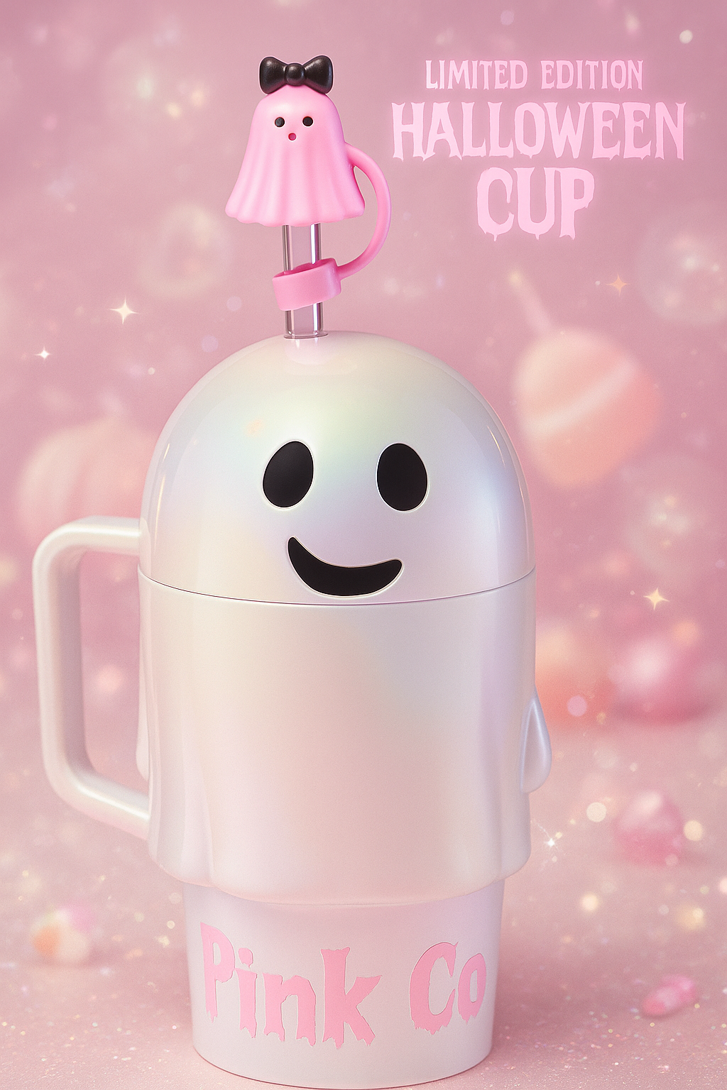 Sip spooky- cute this season with our Limited-Edition Pink Co Halloween Cup! This ghost tumbler brings a fun, girly twist to Halloween- perfect for your coffee, cocoa, or your favorite fall drink.